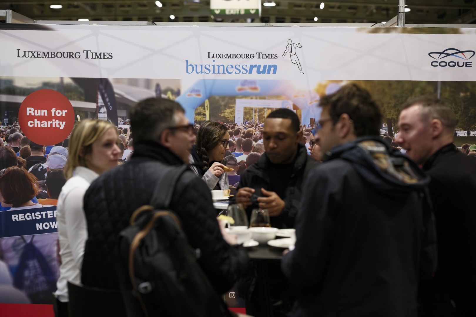 The exhibitor area sponsored by Luxembourg Times BusinessRun*