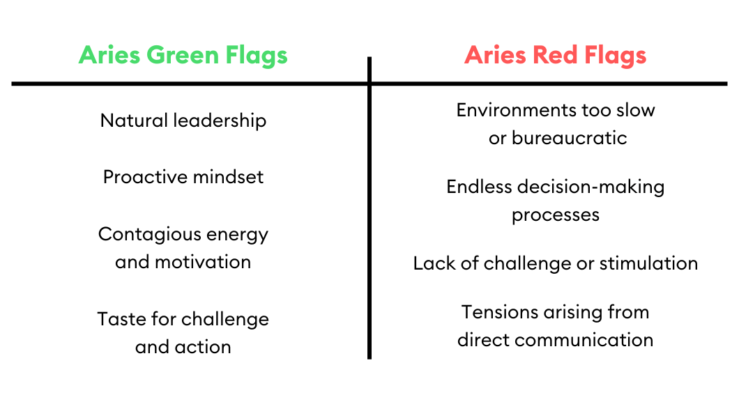 At work, Aries stands out for their energy and ability to take action quickly. Where others may overthink, Aries prefers to test, experiment and move forward.