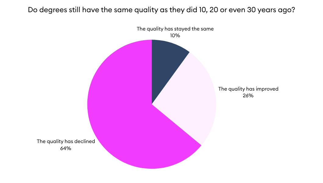 In other words, nearly two-thirds of respondents believe that degrees have lost their value. A harsh verdict that raises numerous questions about teaching methods, the democratisation of higher education, and how well qualifications align with the actual needs of the labour market. Let's take a closer look.