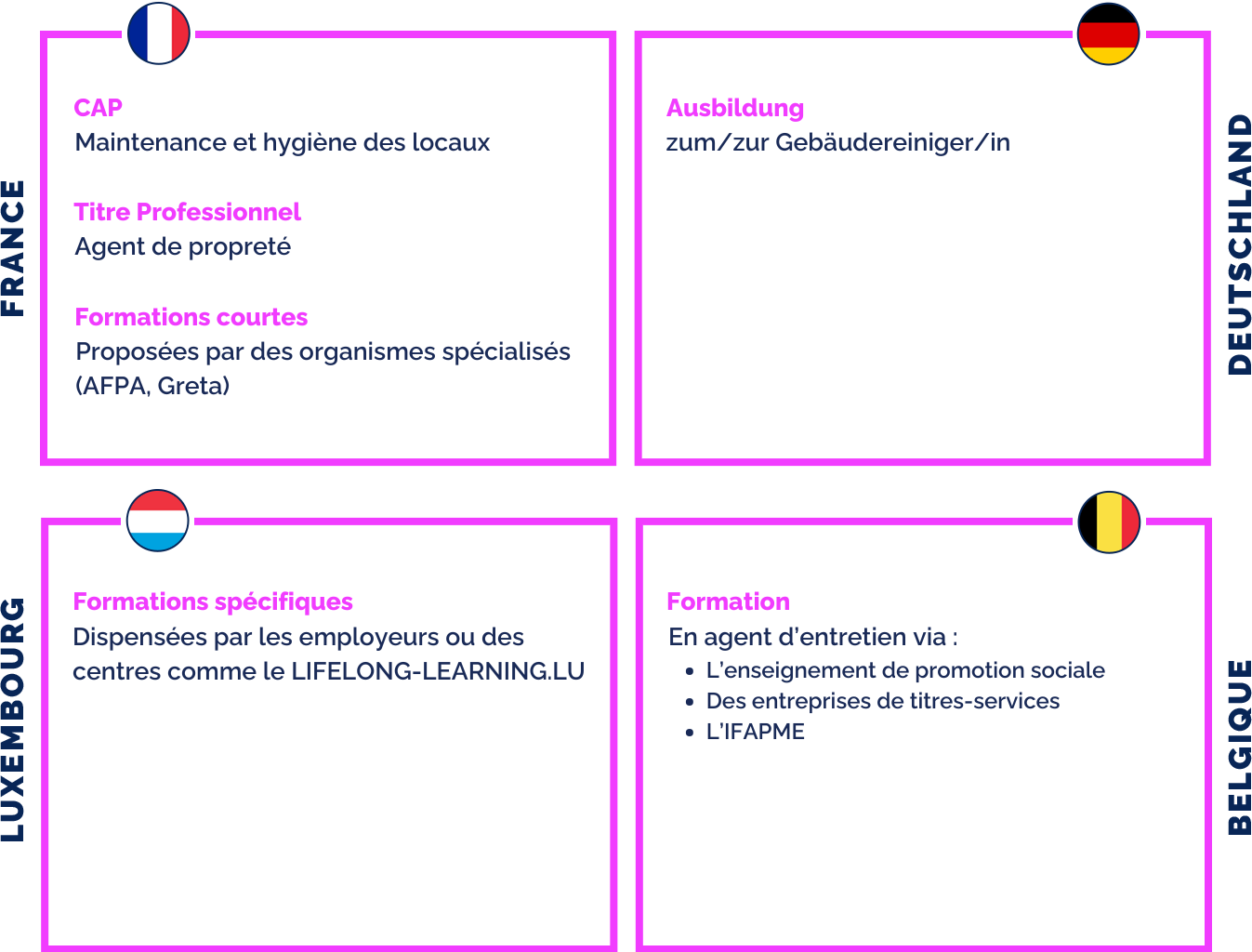 Table showing French, German, Luxembourgish and Belgian qualification levels for the profession of cleaning operative in Luxembourg